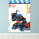 Ein Schauspieler in der Rolle eines Samurai, mit einem bunten gemusterten Gewand und Schwert. Der mittlere Teil eines Triptychons. Hier ein Samurai auf einem Knie vor der Plattform, wo sitzt der mächtige Krieger mit dem Drachenrobe, Szene in der rechten Sektion. Als Mittelsmann bewundert er die Samurai im links Bild der drei. Aus dem 19. Jahrhundert (1848) Holzschnitt "Soga no Taimen" (Szene aus einem Soga-Spiel) von Utagawa Toyokuni. Alle Rechte vorbehalten © 2014 padre art