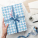 Ein Verpackungspapier entwarf mit einem hellblauen und weißen Hahnentrittmustermuster in der mittleren Größe. Sie können das hellblaue für eine andere Farbe ändern.