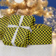 Ein Packpapier entwarf mit einem schwarzen und gelben karierten Muster in der mittleren Größe. Sie können das Gelb für eine andere Farbe ändern.