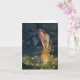 Eine fotografische Reproduktion eines Gemäldes im Pre-Raphaelite-Stil von Arthur Hughes, dessen Werk für leuchtende Farben und professionelle Handarbeit bekannt ist. Die Pre-Raphaelite Maler waren Ende des 19. Jahrhunderts aktiv. Dieses hier heißt "Midsommer Eve" und zeigt ein junges Mädchen in einem Wald, umgeben von Fee. Diese Karte ist in 2 Größen erhältlich und innen leer.