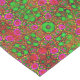 Vibrige geometrische Muster verbinden sich in einer kaleidoskopischen Anordnung mit kühnen Farbtönen in Rot, Grün und lila. Symmetrische Formen schaffen ein faszinierendes und kompliziertes Design.