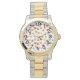 Diese Frauenuhr hat ein Boho Design von Blume in gemischten Farben über das Design verteilt.