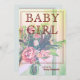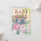 Eine Einladung für eine Babydusche mit Blumen auf der Vorderseite und Veranstaltungsinformationen auf der Rückseite.