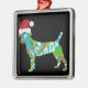 Mixed media collage art DOG PUPPY in Santa Hat Ornament Aus Metall