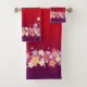 Mixed Sakura Blüten Kimono Stil Rot & Lila Badhandtuch Set