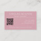 Unsere stilvolle, personalisierbare Visitenkarte mit einer mistigen Rose / staubigen rosa Farbe - eine anmutige Mischung aus weichem Rosa und subtilen lila Untertönen. Elegantes Monogramm- und Signaturskript erstellen eine ausgefeilte Anweisung, die mit einem QR-Code ergänzt wird. Passen Sie Ihren bleibenden Eindruck mit unserem modernen, minimalistischen, zweistelligen Monogramm und der anpassbaren Vorlage an. Verlass ein berufliches Zeichen, das einzigartig deins ist. Edition mit klassischem weißem Schriftart.