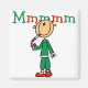 Ein Weihnachtsfeiertag T - Shirt-Design mit einem Strichmännchen Kind essen einen Bonbonbon und rot und grün, dass "Mmmmm".