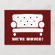 Möbel verschieben Postkarten für neue Adresse. Adressenwechsel mit klassischem Stuhl/Sofa-Design. Verschieben von Postkarten mit elegantem Design. Benutzerdefinierter Bewegungstext; Wir sind umgezogen! Oder Wir sind umgezogen! Fügen Sie Ihre neue Adresse Ihres Hauses auf der Rückseite ein. Chic Umzugskarten für neue Zuhause, Party oder Geschäftsstandort für die Hauswärmung. Moderne Typografie. Auch praktisch für die Firma mover.