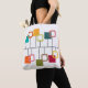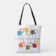 Diese Tote-Tasche hat ein modernes Design, das wie ein Handy aussieht, mit soliden und offenen Plätzen, die in aquamarin, orange, grün, rot und beige hängen.