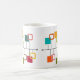 Diese Tasse hat ein modernes Design, das wie ein Handy aussieht, mit soliden und offenen Plätzen, die in aquamarin, orange, grün, rot und beige hängen.