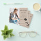 On front: Add your own vertical size photo of the graduate. A trendy mocha, beige colored background, black text. Templates for a name and date. The name is written with a modern hand lettered style script. With a cap, tassel topper.