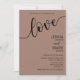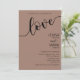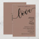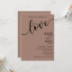Mocha Black Love Script Minimalist Wedding Invitation with QR code. This minimalist design features elegant script and clean typography, making it the perfect choice for the stylish, contemporary couple. Lovely trending latte mocha with contrasting black script balances modern sophistication with organic warmth. The back features a QR code to link to all your wedding details. If you prefer, delete the text and QR code for a plain card back. Use capital letters when inputting your names, as shown in the sample, if you like the design as is. Contact the designer for any customization questions
