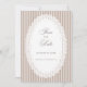 Elegant wedding invitation featuring classic mocha French pinstripes and a delicate scalloped lace doily-inspired frame for a romantic vintage look. The soft neutral mocha palette creates a timeless, refined aesthetic that pairs beautifully with farmhouse weddings, classic romantic celebrations, and modern vintage wedding themes. Clean, sophisticated, and effortlessly chic, this design is perfect for couples who love neutral wedding stationery with a touch of lace elegance.