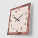 Große quadratische Acryluhr mit glänzender Moscha-Kupfer-Rahmen und heller Rose/Creme-Hintergrund. Die schwarze Nummerierung passt zu den Händen. Klicken Sie auf die Schaltfläche "Anpassen!", um die Hintergrundfarbe zu ändern, Schriftart, Größe und Position nach Bedarf hinzuzufügen. Kunstwerk und Design von Karlajkitty