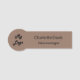 Mocha murmelte das braune Firmenlogo, magnetischer Namensschild