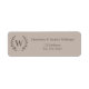 A mocha, brown colored background. Decorated with a wreath. Personalize and add your name, address and family monogram initial. Warm taupe colored text.