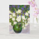 Eine Geburtstagskarte mit einem originalen Ölpastellbild eines grünen Krug gefüllt mit duftenden Mock Orange Blossom und blauen Ceanothus.