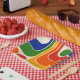 Retro Mitte Jahrhundert Modernes geometrisches Design in Gelb Orange und Braun.