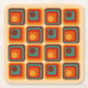 Retro Mitte Jahrhundert Modernes geometrisches Design in Gelb Türkis Rot Orange und Braun.