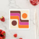 A dynamic abstract composition featuring two bold circles—one orange, one dark brown—linked by three flowing bands in orange, pink, and brown. Each stripe is bordered by crisp lines, curving gracefully across a soft beige background. The interplay of shape and color evokes 1970s graphic design, balancing visual rhythm with sculptural simplicity. The result is a harmonious, retro-inspired piece that captures motion, contrast, and editorial clarity.
