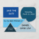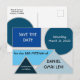 Eine Save the Date Postkarte zur Koordination mit der Mod Blue Shapes-Auflistung.