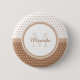 Mit diesem modischen, hellbraunen und weißen Knopf mit einem Mod-Kreis-Polka-Punktmuster verleihen Sie Ihrem persönlichen Stil ein gürtelhaftes zeitgenössisches Aussehen. Jedes moderne Mädchen würde Liebe haben, ihren Namen und ihr Monogramm auf dieser preppy und modernen Namensschild-Design personalisiert zu haben.