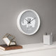 Diese Uhr zeigt unseren super niedlichen, weißen Elefanten auf grauem Hintergrund mit umrissenen Zahlen.