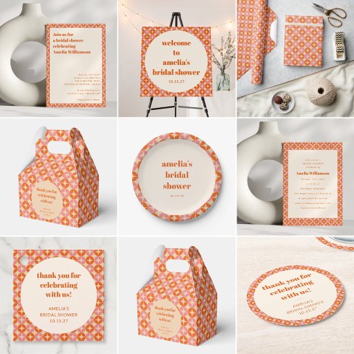 Retro Pink Orange Mid Century Modern Bridal ShowerDesignt von Opal Ellery