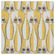 Farbblock-Katzen im Stil der 1960er Jahre Mod-Sonnenbrillen, auf einem gestreiften Hintergrund, in Goldstange, Mitternachtsblau, lebende Korallen und hellgrau.