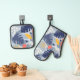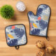 Mod Monstera Leaf Abstrakt Hawaiian Tropical - Blu Ofenhandschuh & Topflappen-Set