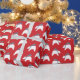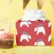 Modernes und minimalistisches Weihnachtspapier mit Eisbären mit blau gestreiften Schals. Es kommt in einer kontinuierlichen Rolle. Ideal für die Weihnachts- und Urlaubssaison. Auf einem klassischen roten Hintergrund mit mehr Farboptionen im clearlykgekrönten Atelier-Shop. Ebenfalls in gemischten Sets erhältlich.