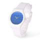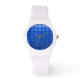 Mod Pop Dots in Gradientenkreistönen von Denim, Elektro, Kobalt und Indigoblau, auf einer sportlichen weißen Uhr.