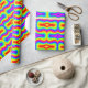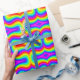 Dieses trendige, fette Retro-Retro-Modern-Boho Hippie-Trippy-Psychedelic Mitte des Jahrhunderts moderne bunt lebendige Regenbogenstreifen-Muster wurde mit Mirror Labrador gemacht