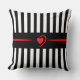Mod Schwarz-Weiß Streifen mit hellrotem Herzen Kissen