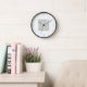 Diese Mod Shooting Star Round Wall Uhr verfügt über einen schwarzen Holzrahmen mit abgestuften grauen, gelben Dreiecken und Punkten für Zahlen und ein Mitte-Quadrat mit einem Schießstar in der Mitte. Das moderne, geometrische und dennoch weiche Ambiente ist mit seiner minimalistisch-modernen Dekoration eine gelungene Wahl für jeden Geschmack.