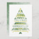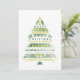 Diese Urlaubskarte enthält einen Weihnachtsbaum, der aus geometrischen Mustern mit gemalten Texturen erschaffen wurde. Es wird durch modernes Design und Detailliertheit inspiriert.