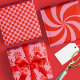 Dieses lustige und festliche Urlaubspapier mit einem rot-rosa Retro-inspirierten Hintergrund. Dieses Verpackungspapier koordiniert mit unseren Mod Wavy Groovy Urlaubskarten.