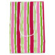 Hellrote, rosa und limig grüne Streifen schmücken diesen festlichen Geschenksack. Diese helle Geschenktasche ist ideal für Kinder, Jugendliche, Erwachsene, Weihnachten, Feiertage, Geburtstag, etc...Das Design stammt aus der originalen Kunst.