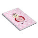 Ein gürteliger zeichn eines niedlichen gepunkteten Ladybugs, der einen roten Bogen im Haar trägt, und die Worte: Modebug mit einem rosa Retro-Dissy, der das i abschneidet, vor einem Hintergrund aus rosa Polka-Punkten und Herzen.