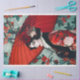 Dieser bezaubernde Kunstdruck bringt Sie in eine Welt zeitloser Eleganz und kultureller Schönheit, in der ein Modell in einem faszinierenden Ensemble vereint wird, das traditionelle Elemente mit hoher Mode verbindet. Das Bild erzählt eine Geschichte von Anmut und Raffinesse, in der jedes Detail zum allgemeinen Reiz und Charme der Szene beiträgt. Das Modell steht unter einem kräftigen roten Sonnenschirm, der ein sanftes, warmes Licht über ihre zarten Eigenschaften wirft. Der Sonnenschirm mit seinen komplizierten Speichen und seiner kühnen Farbe fügt der Komposition ein dramatisches und theatralisches Element hinzu. Ihr Kleidungsstück ist ein reichhaltiger Wandteppich aus Texturen und Mustern mit einem Blumenmotiv, das genauso faszinierend wie schön ist. Der Stoff mit blühenden Blume und zartem Blattwerk erinnert an Romantik und Kulturerbe. Ihr Haar ist in eleganten Wellen gestylt und mit einer atemberaubenden Anordnung von roten und weißen Blume, Beeren und Spitzen geschmückt. Dieses Headpiece ergänzt die Blumenmotive ihrer Kleidung um eine Touch von Launen und Fantasie. Ihr Make-up ist einwandfrei ausgeführt, mit fett roten Lippen und sanft akzentuierten Augen, die ihren faszinierenden Blick verstärken. Der Spitzenkragen und die aufwändige Stickerei auf ihren Ärmeln verleihen ihr eine zusätzliche Schicht von Verfeinerung und Details, die das Handwerk und die Kunstfertigkeit zeigt, die bei der Gestaltung dieses Aussehens eine Rolle spielen. Was diesen Kunstdruck wirklich besonders macht, ist seine Fähigkeit, ein Gefühl von Nostalgie und zeitloser Schönheit zu wecken. Die harmonische Mischung aus Farben, Texturen und Mustern schafft ein visuelles Fest, das den Betrachter in eine Welt der Eleganz und des kulturellen Reichtums zeichne. Die Gegenüberstellung des lebhaften Rotes vor dem weicheren Hintergrund der Blumen verstärkt den dramatischen Effekt und macht das Bild zu einem auffälligen und unvergesslichen Erlebnis. Ideal für alle, die Kunst, Mode und kulturelles Erbe schätzen, wird dieser Ausdruck jedem Raum eine Touch von Eleganz und Schönheit verleihen. Ob im Wohnzimmer, im Schlafzimmer oder in einem stilvollen Büro, es dient als Brennpunkt, der Aufmerksamkeit und Bewunderung erfordert.