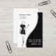 Mode-Visitenkarten mit schicker Modedame, die einen Damast trägt, kleiden und Textplan an, die Sie auf einem rosa weißen und schwarzen Hintergrund besonders anfertigen können. Stilvolle Visitenkarte, die unterscheidend und frisch ist. Beste Geschäftskarten für die Themen, die auf Mode-Butike, dem Modellieren, Schönheit bezogen werden, oder verwenden dieses für einen Haar- oder Nagelsalon.