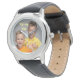 Kinder Edelstahluhr mit schwarzem Lederarmband