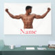 Muskelaufbau, der seine Muskeln spielen lässt, um sich mit Ihrem eigenen Gruß, Namen, Botschaft usw.