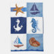 Original Aquarellmalerei von Sandra Gale, mit Blöcken von nautischen thematischen Zeichnungen wie Sternfisch, Anker, Schiff, Schildkröte und Muscheln. Das Design ist ausgezeichnet für den Sommer, die Zuhause, die Bungalows oder für alle, die den Strand, das Meer oder den Fisch Lieben.