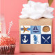 Original Aquarellmalerei von Sandra Gale, mit Blöcken von nautischen thematischen Zeichnungen wie Sternfisch, Anker, Schiff, Schildkröte und Muscheln. Das Design ist ausgezeichnet für den Sommer, die Zuhause, die Bungalows oder für alle, die den Strand, das Meer oder den Fisch Lieben.