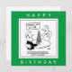 Geburtskarte des Modellherstellers. Ein Mann in einem Modellverein hat aus Würstchen ein Modell des Eiffelturms gebaut. Surreal Cartoon des britischen Karikaturisten Nigel Sutherland.