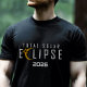 Clean lettering highlights the 2026 total solar eclipse with a crescent moon. A great pick for eclipse watchers, viewing parties, and anyone traveling to see totality in 2026.