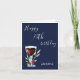Modern 70th Happy Birthday Red Wine Navy Blue Grußkarte. Geburtstagskarte für sie oder ihn. Das Design ist mit einem Rotwein, Rose und Zweigen auf marineblau gehalten. Der Text ist weiß und kann vollständig angepasst werden - personalisieren Sie ihn mit Ihrem Namen und jedem Alter - 30. 40. 50. 60. 70. 80. 90. 100.