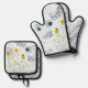 Modern Abstract Botanical Yellow Billy Button Ofenhandschuh & Topflappen-Set