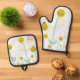 Modern Abstract Botanical Yellow Billy Button Ofenhandschuh & Topflappen-Set